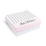 Krabice jsou vyrobeny z kartonu a laděny do teplé, přírodní estetiky – dobře se kombinují s dalšími valentýnskými prvky, jako jsou valentýnské ubrousky, ubrusy či papírová valentýnská brčka. Je dobré vědět, že obal nejen dobře vypadá, ale zároveň splňuje ekologické standardy.