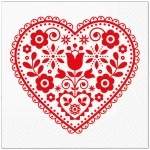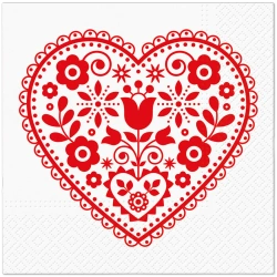 Třívrstvé ubrousky "Folk Hearts", 1/4, 33 x 33 cm 20 ks