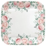 Čtvercový papírový talíř "Růže", 23 x 23 cm, 8 ks.
