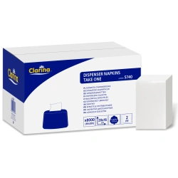 Ubrousky 2vrstvé, bílé, do dávkovače, Clarina 16 x 20 cm, 8000 ks
