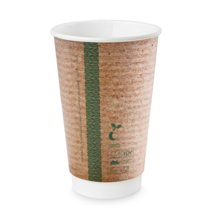 Ekologické dvouvrstvé kelímky o objemu 450 ml a průměru 90 mm. Vyrobené z kukuřičné mouky, recyklovaného papíru a celulózového papíru (nebyly použity žádné plastové materiály!).