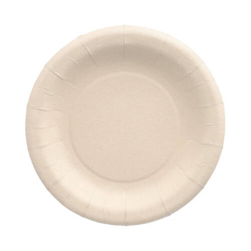 Ekologické talíře o průměru 18 cm. Jsou vyrobeny z rostlinných zbytků, jako jsou listy cukrové třtiny nebo rýžová sláma.
