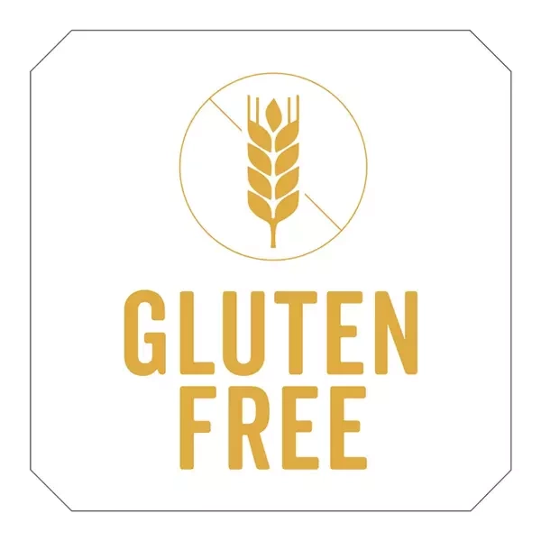 Papírové nálepky o rozměrech 2,5 cm x 2,5 cm s nápisem "Bezlepkové". Snadný způsob, jak označit jídla vyrobená z bezlepkových produktů.