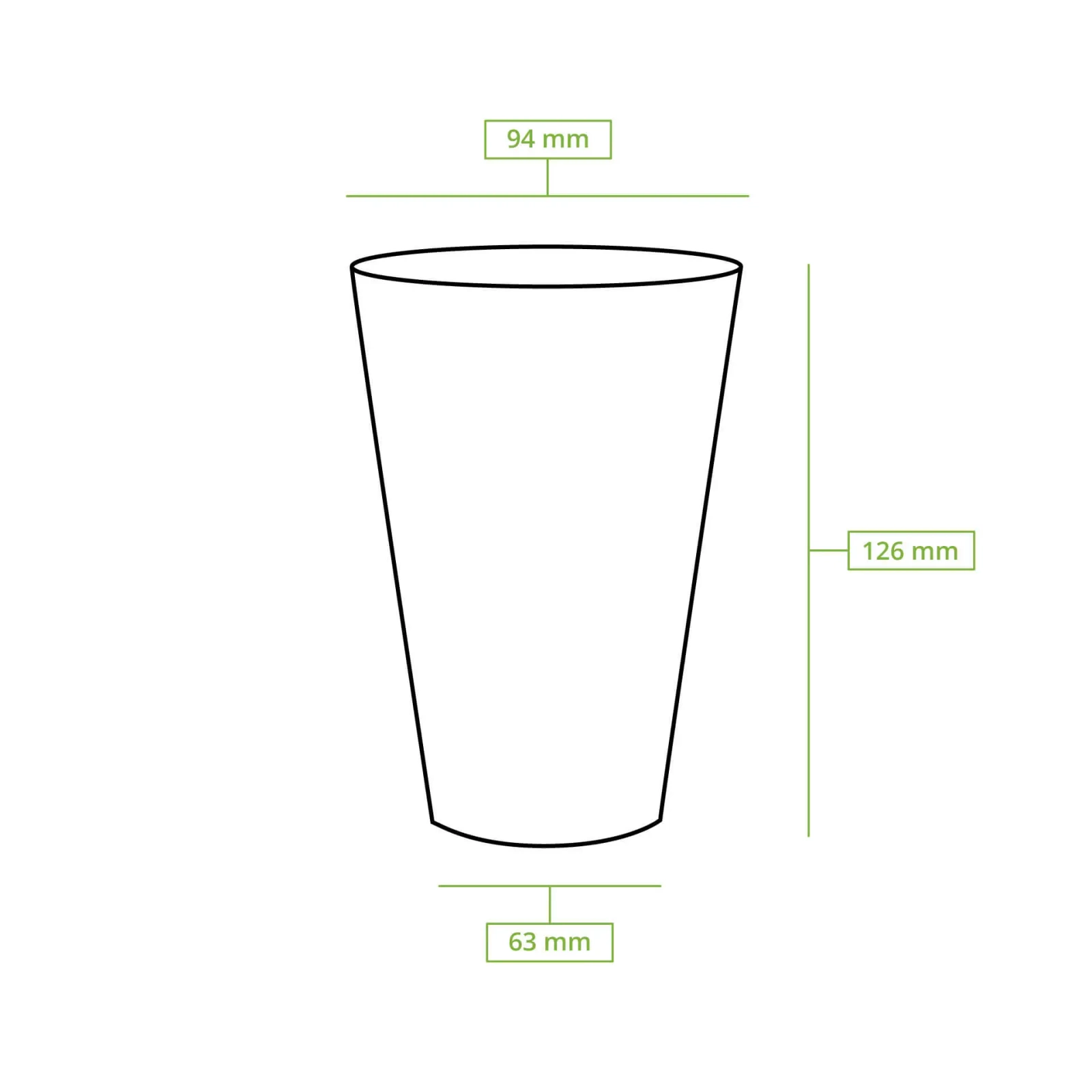 Kelímky s objemem 400 ml a průměrem 95 mm. Celé vyrobené z PLA (materiál na bázi kukuřičné mouky)*.
