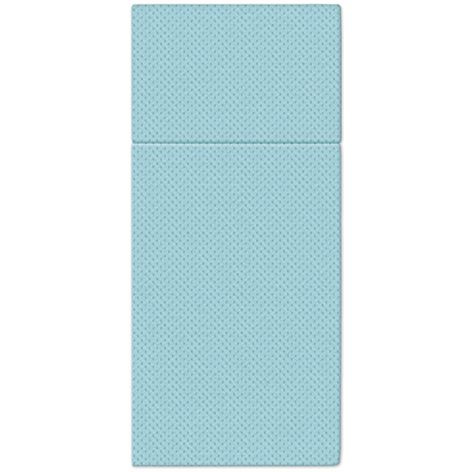 Světle modré, ražené* sáčky-ubrousky na příbory o rozměrech 38 cm x 32 cm, složené na 1/8, ze série Softpoint. Vyrobeny ze 100% celulózy.