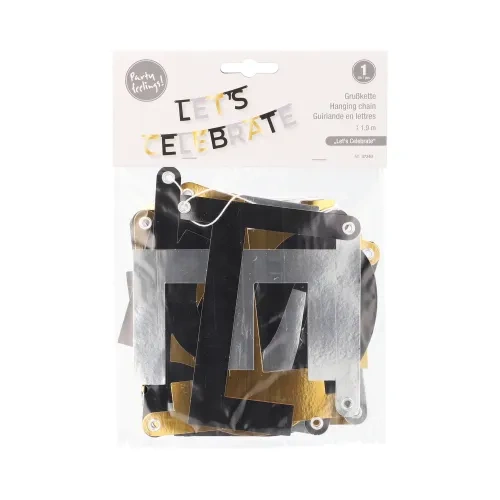 Přivítejte své hosty na oslavě girlandou „Let's Celebrate“! Vyrobena z odolné lepenky a zdobena černými, zlatými a stříbrnými písmeny, dodá radostný akcent každé oslavě. Snadno se zavěsí a je efektní dekorací na dětské i dospělé večírky.