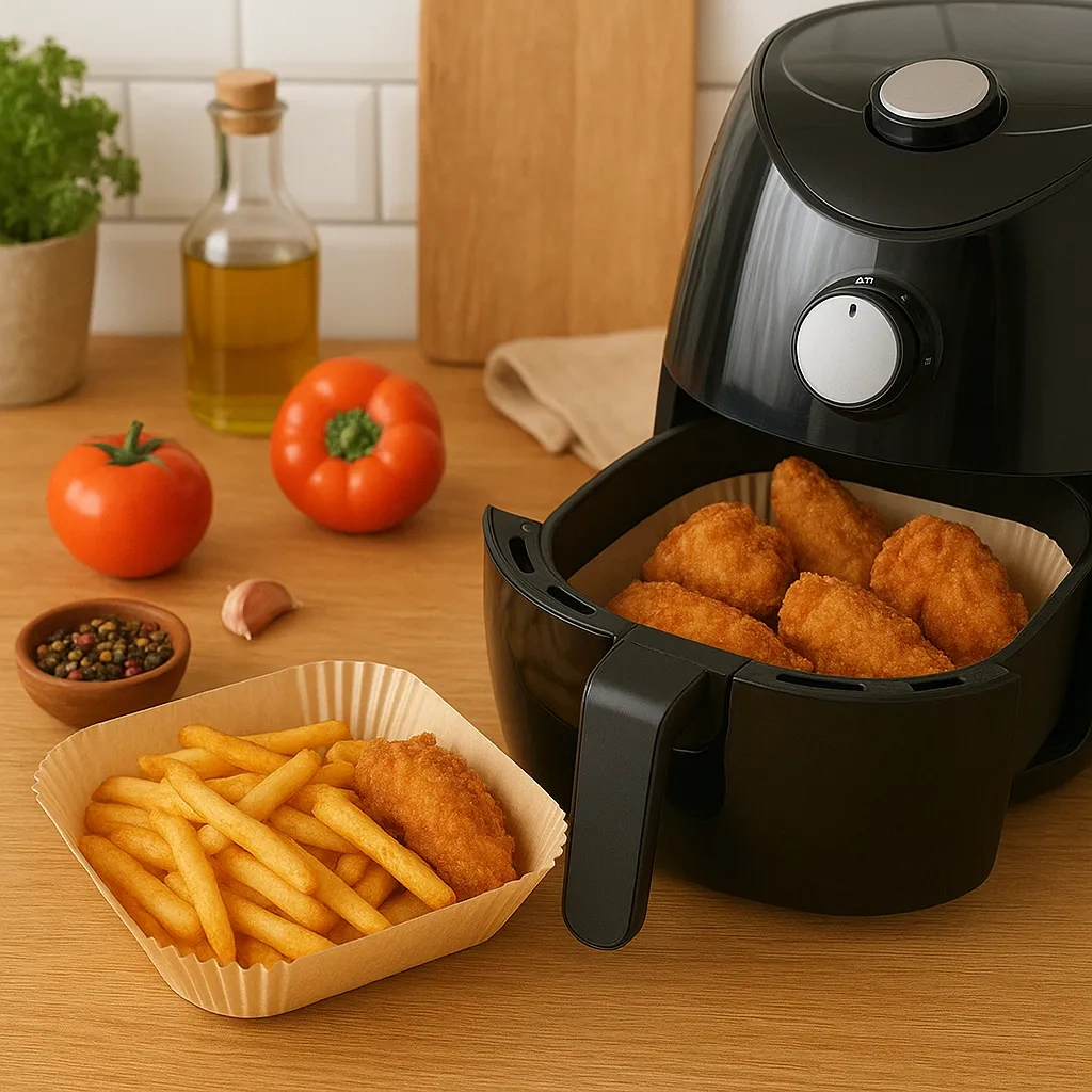 Papírové vložky do horkovzdušné fritézy a trouby jsou praktickým řešením, které usnadňuje každodenní vaření a pečení. Jsou odolné vůči vysokým teplotám do +220°C a zabraňují připalování pokrmů. Chrání zařízení před znečištěním, čímž zkracují čas úklidu po jídle. Ideální pro přípravu hranolků, masa, zeleniny nebo pečiva – pohodlí a čistota v kuchyni v jednom.