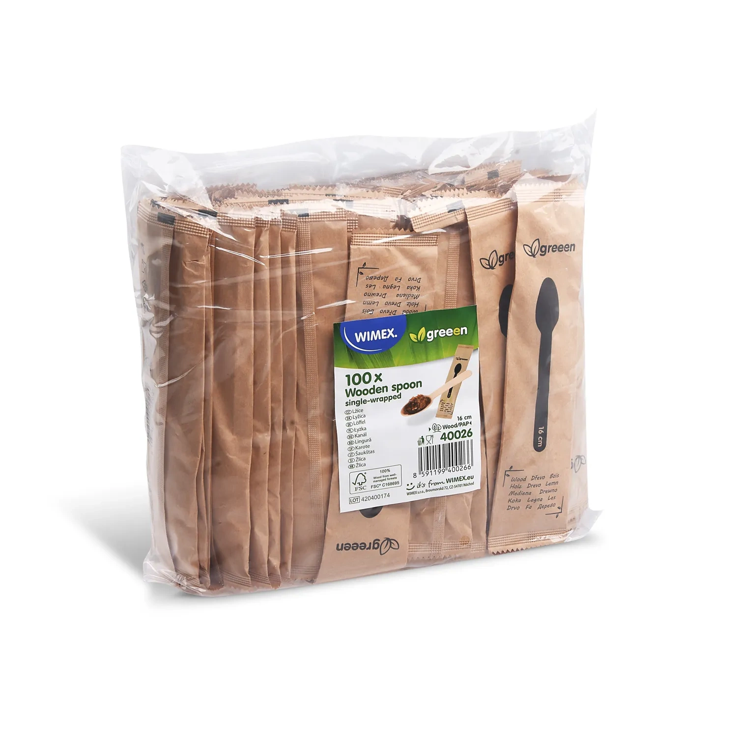 Ekologické, dřevěné lžiče o délce 16 cm. Jsou baleny hygienicky - jednotlivě, v papírových sáčcích.
