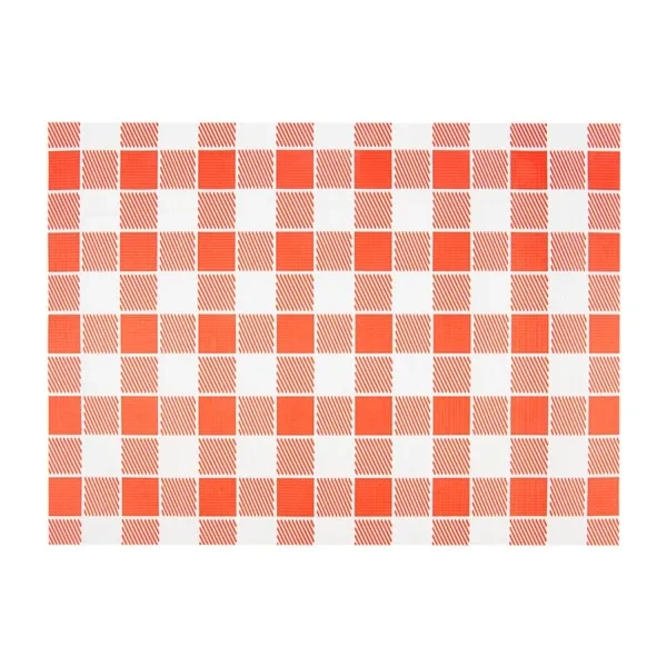 Papírové podložky v bílo-červeném kostkovaném vzoru. Mají rozměry 31 cm x 43 cm.