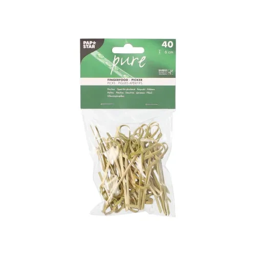 Špejle na jednohubky o délce 6 cm, zakončené dekorativním "uzlíkem". Vyrobeny celé z bambusu.