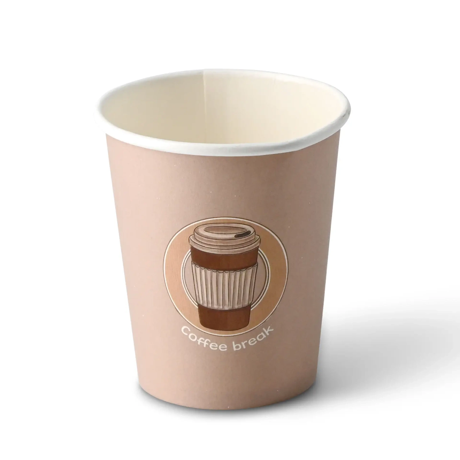 Světlé hnědé kelímky s potiskem šálku kávy a nápisem „Coffee Break“ jsou praktickým a stylovým řešením pro kávové přestávky v kancelářích, během školení nebo obchodních schůzek. Výrazný potisk hned ukazuje účel kelímku a teplé barvy a přátelský motiv dodávají každé přestávce příjemnou atmosféru. Ideální tam, kde záleží na pohodlí, komfortu a chvíli odpočinku u dobré kávy.
