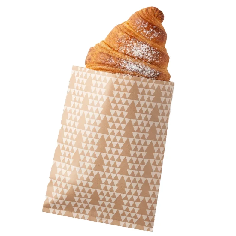 Papírové skládané sáčky s vánočním potiskem jsou praktickým a stylovým obalem na drobné dárky, sladkosti nebo pečivo z vaší pekárny či cukrárny. Ozdobené minimalistickým potiskem se stromečky dokonale podtrhnou sváteční charakter dárků i sladkých a slaných dobrot.