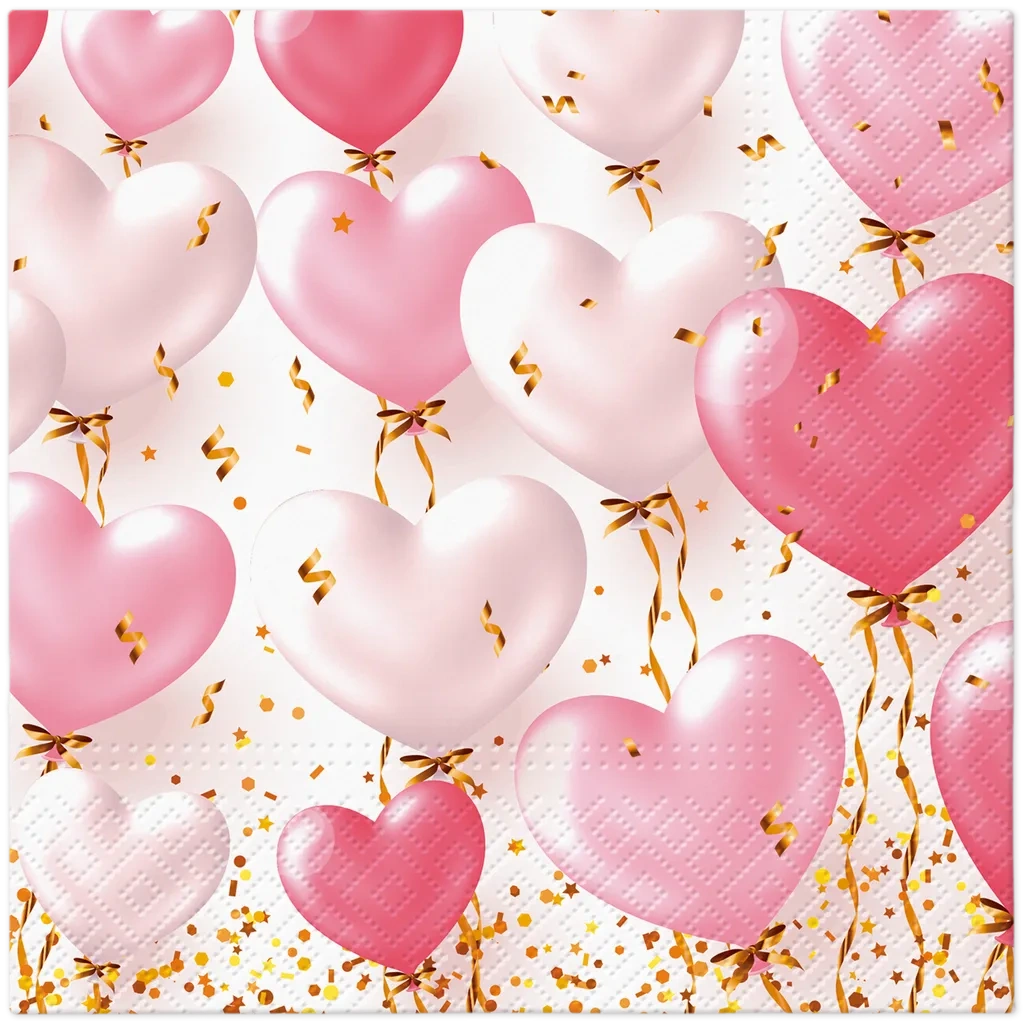 Třívrstvé ubrousky "Heart Baloons", 1/4, 33 x 33 cm 20 ks