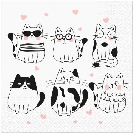 Třívrstvé ubrousky "Meow Hearts", 1/4, 33 x 33 cm 20 ks