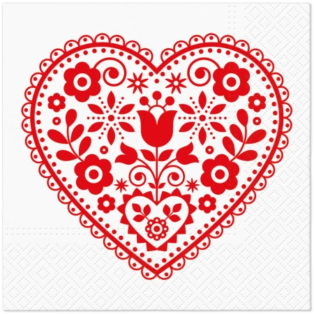Třívrstvé ubrousky "Folk Hearts", 1/4, 33 x 33 cm 20 ks