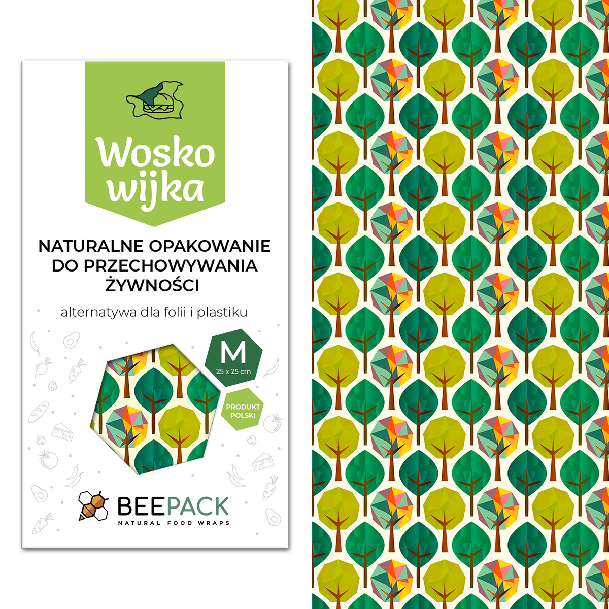 Včelí vosk ve velikosti "M" - 25 cm x 25 cm. Je vyroben z certifikované bavlněné látky, pokryté speciální vrstvou na bázi zcela přírodních složek!*