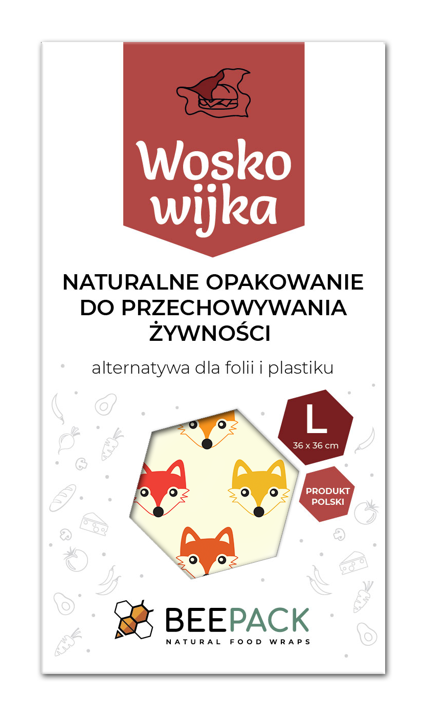 Včelí vosk ve velikosti "L" - 36 cm x 36 cm. Vyroben z certifikované bavlněné látky, pokrytý speciální vrstvou zcela přírodních složek!*