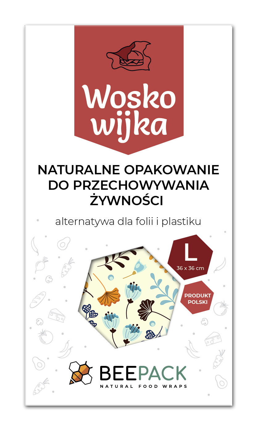 Včelí vosk ve velikosti "L" - 36 cm x 36 cm. Vyroben z certifikované bavlněné látky, pokrytý speciální vrstvou zcela přírodních složek!*