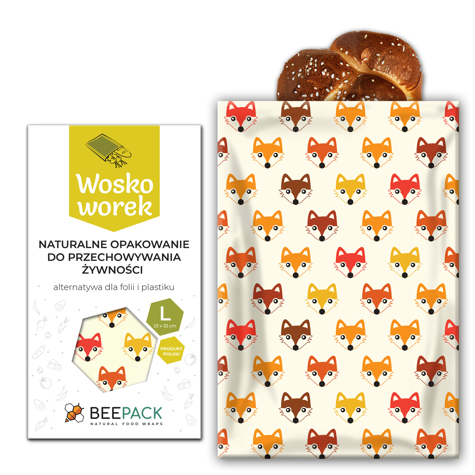 Voskové sáčky na potraviny „Lišky“ L 23 × 32 cm – 1 ks.