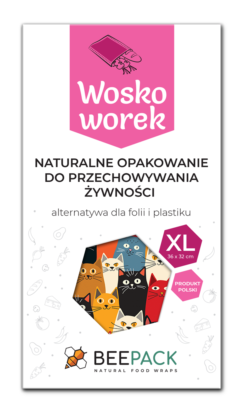 Voskové sáčky na potraviny „Kočky“ XL 36 × 32 cm, 1 ks.