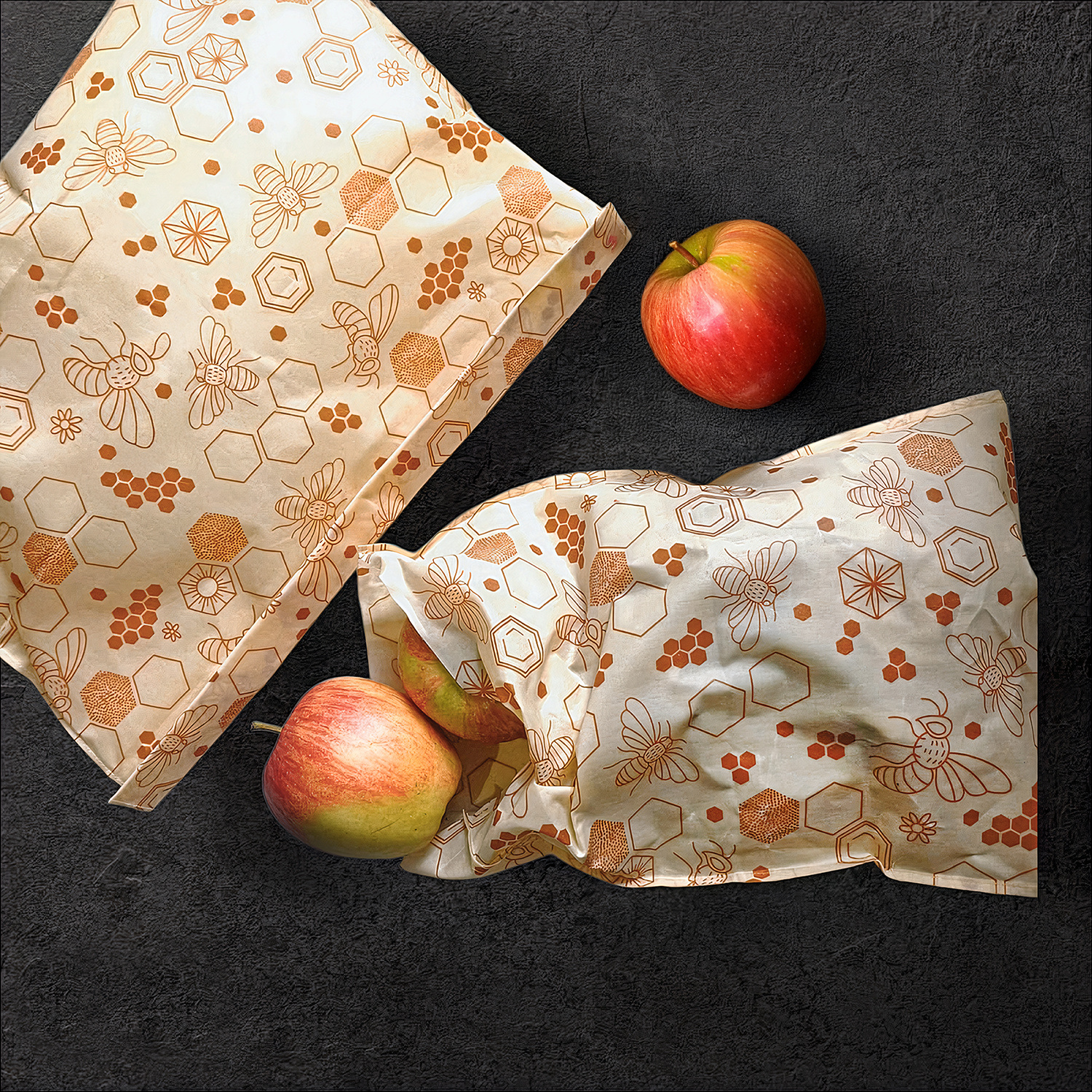 Voskové sáčky vyrobené z certifikované bavlněné látky, potažené speciální vrstvou zcela z přírodních složek. Jsou ekologickou a opakovaně použitelnou alternativou k jednorázové potravinové fólii a hliníkové fólii.