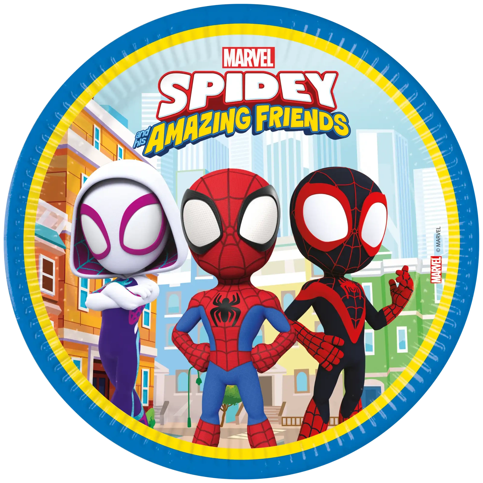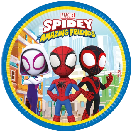 Sada 8 kulatých, plochých papírových talířů s motivem Spidey o průměru 23 cm, vyrobených ze 100% papíru je praktickým a ekologickým doplňkem na narozeniny a jiné dětské oslavy. Talíře se skvěle hodí k servírování pochoutek a jídel, přinášejí barevný tematický prvek na stůl a podtrhují radostnou atmosféru oslavy.
