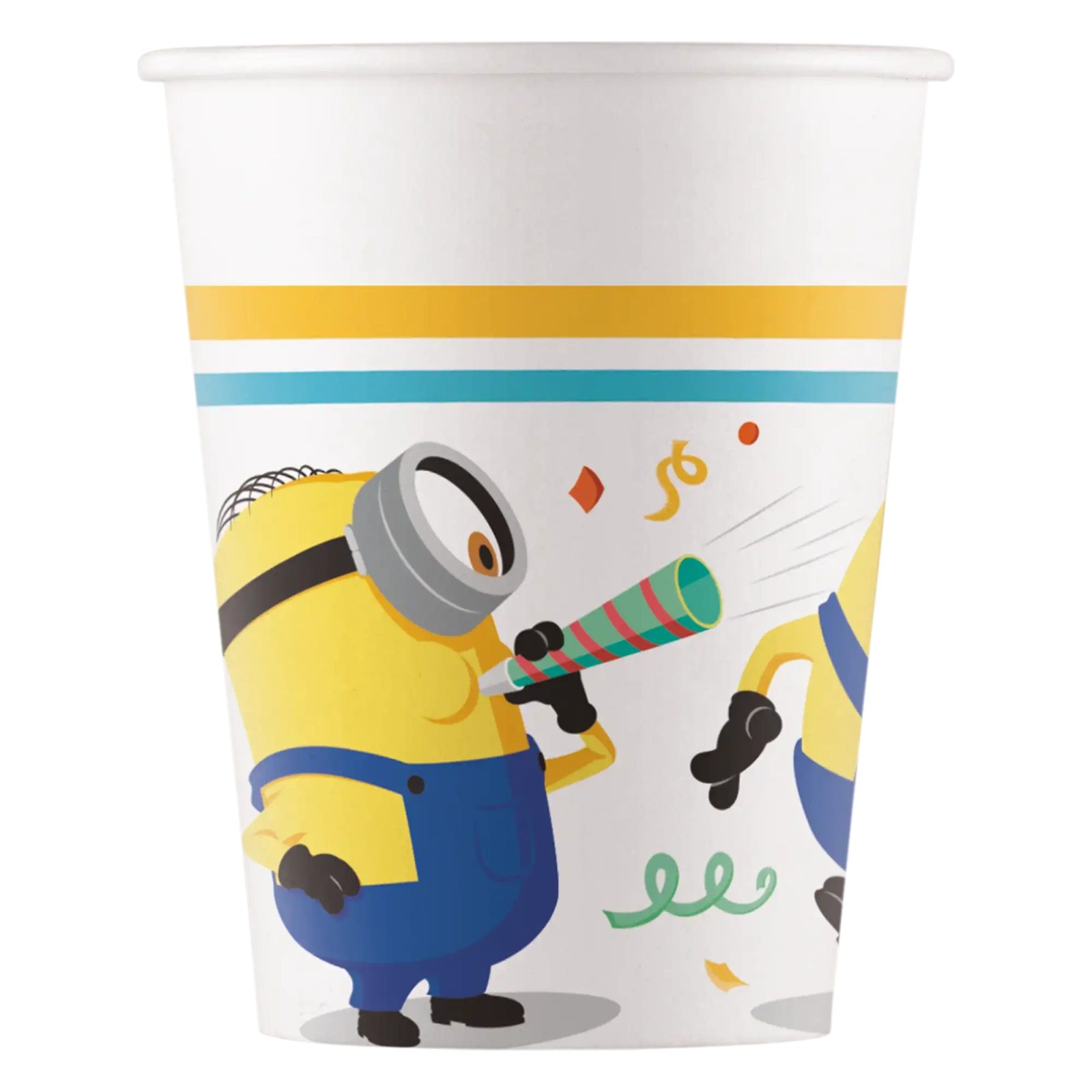 Ekologické papírové kelímky s barevným potiskem s motivem Mimoni, o objemu 200 ml. Skvěle se hodí na dětské narozeninové oslavy nebo jiné akce, kterých se účastní nejmenší.