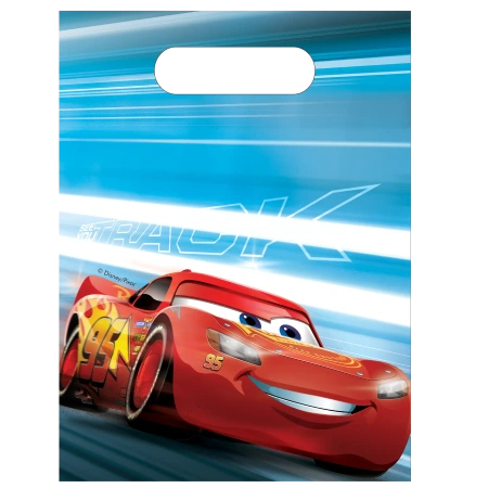 Sada 6 ks fóliových dárkových sáčků s motivem Auta o rozměrech 17 × 23 cm je praktický a efektní způsob balení sladkostí nebo drobných dárků.
