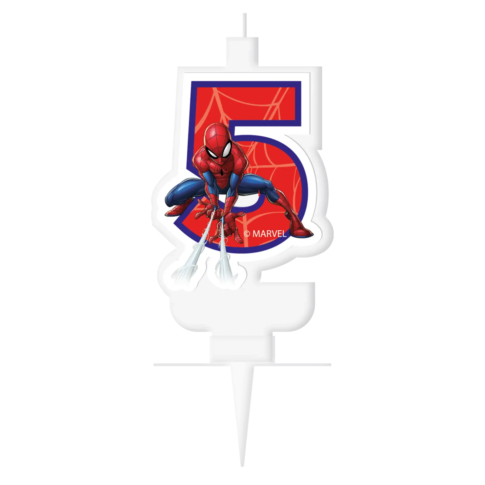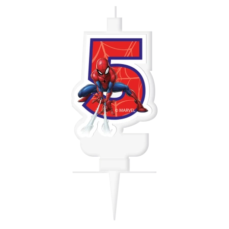 Narozeninová svíčka s motivem Spiderman Marvel, zobrazující číslo 5. Balení obsahuje 1 kus svíčky o výšce cca 10 cm.