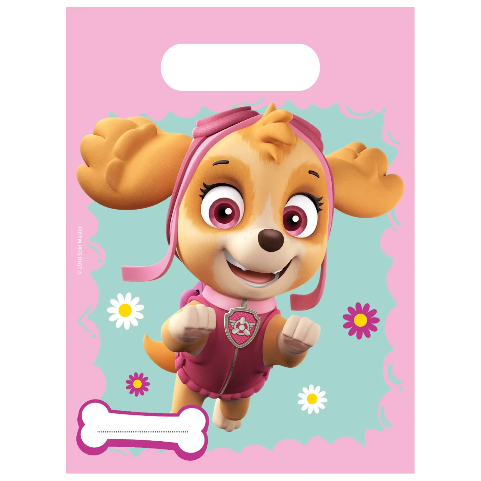 Sada 6 ks fóliových dárkových sáčků s motivem Tlapková patrola Skye & Everest o rozměrech 17 × 23 cm je praktický a efektní způsob balení sladkostí nebo drobných dárků.