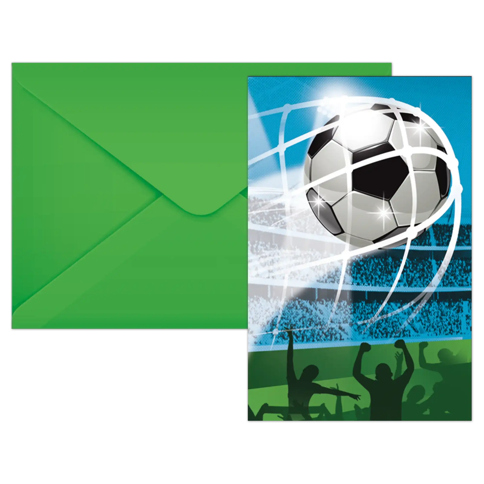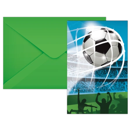 Sada 6 ks papírových pozvánek s obálkou s motivem Fotbal o rozměrech 15 × 25 cm je praktický a efektní způsob, jak pozvat hosty na narozeninovou oslavu nebo jinou akci pro nejmenší.