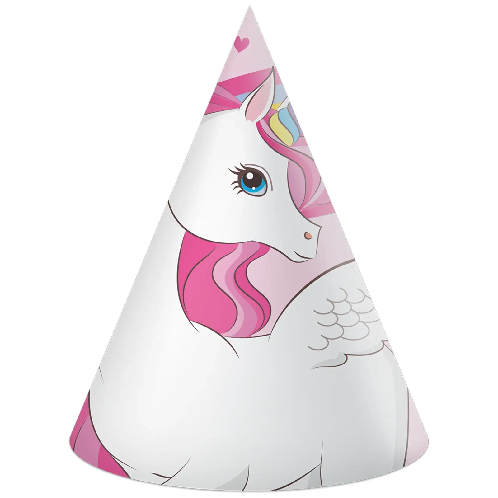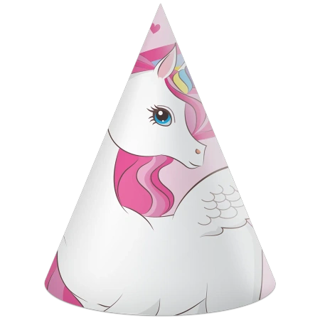 Sada 6 papírových narozeninových čepiček s motivem „Unicorn“ je ideálním doplňkem na dětskou tematickou oslavu. Barevná grafika s oblíbenými hrdinkami pohádky zajistí, že se malí hosté ponoří do pravé párty atmosféry a celá výzdoba získá jednotný pohádkový charakter.