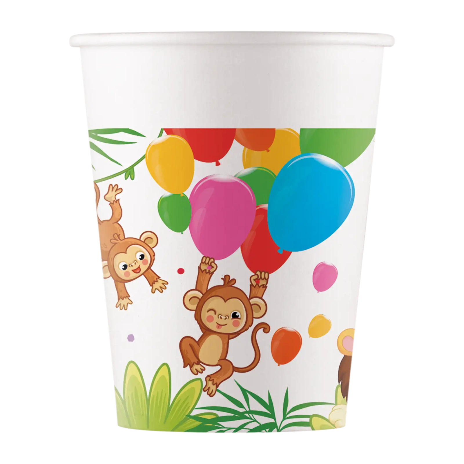 Ekologické papírové kelímky s barevným potiskem s motivem Jungle, o objemu 200 ml. Skvěle se hodí na dětské narozeninové oslavy nebo jiné akce, kterých se účastní nejmenší.
