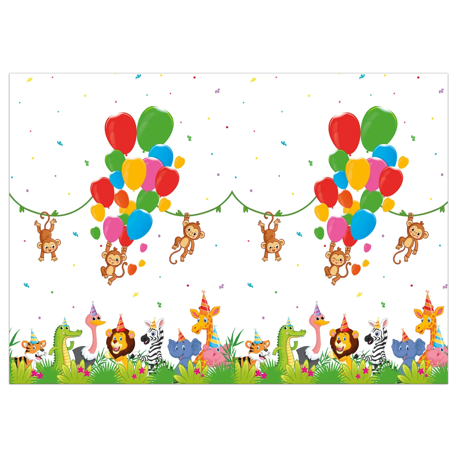 Ubrus o rozměrech 120 cm x 180 cm s motivem Jungle je vyroben z plastu, což z něj činí opakovaně použitelnou alternativu k papírovým ubrusům. Skvěle se hodí na dětské narozeninové oslavy nebo tematické párty s účastí nejmenších.