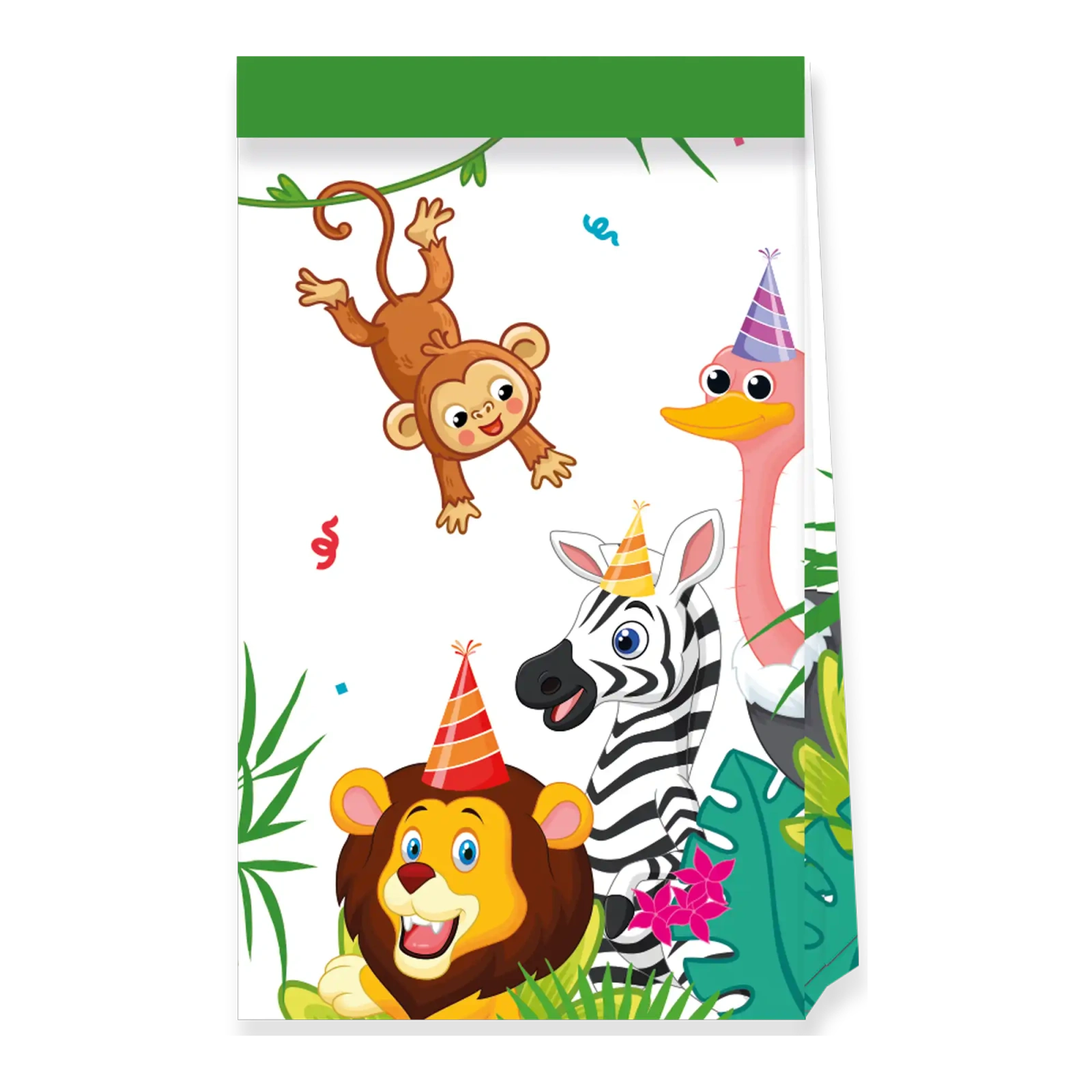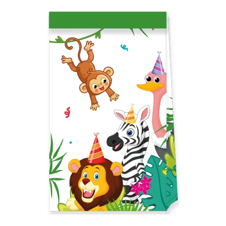 Sada 4 ks papírových dárkových sáčků s motivem Jungle o rozměrech 16×22 cm je praktický a efektivní způsob balení sladkostí nebo drobných dárků. Sáčky se skvěle hodí na narozeninové oslavy a jiné dětské akce, přidávají dárkům barevný tematický charakter a podtrhují veselou atmosféru oslavy.