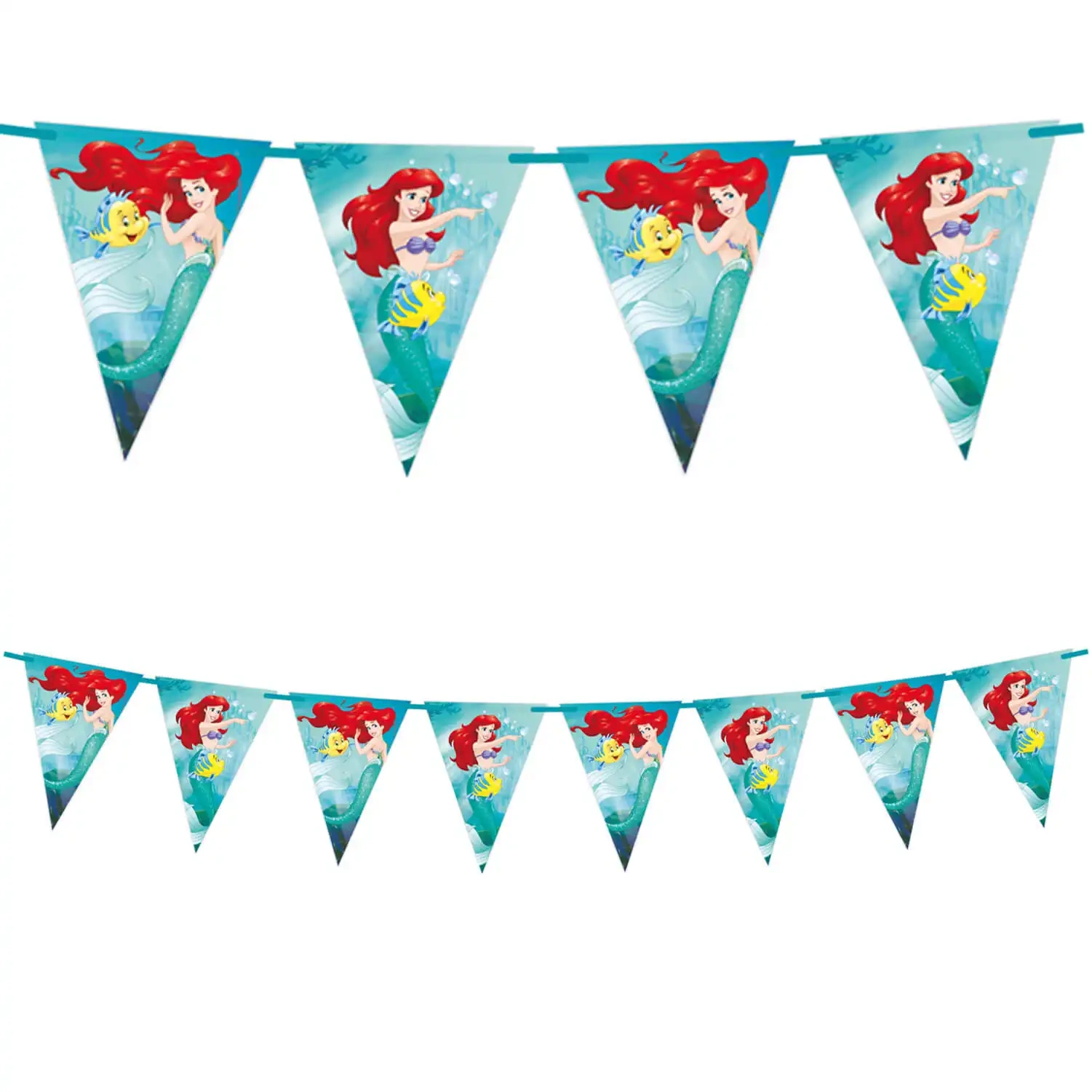 Papírová girlanda s motivem Ariel Malá mořská víla. Má délku 230 cm a každá vlaječka má výšku 25 cm.